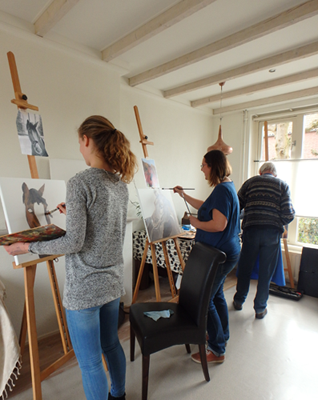Mijn missie is dan ook om de ambachtelijkheid en het plezier dat het tekenen en schilderen geeft in leven te houden en door te geven! Creativiteit, het vinden van oplossingen terwijl je bewust kijkt vanuit volledige aandacht, is namelijk veel meer dan een schilderij maken. Het is Mindful, het is loslaten, volledig vanuit je kern beschouwen en scheppen en dit geeft veel ontspanning en voldoening. Het is een fantastische ervaring om mijn cursisten te zien groeien en tot uitdrukking zien komen!